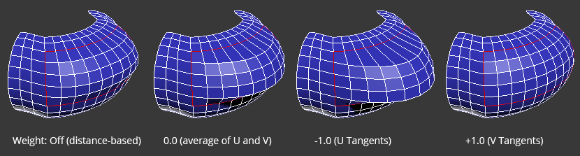 Interpolation is performed in the directions of the parametric rectangle (U and V). The final point is a blend between those.