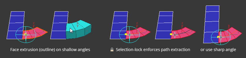 - Path extraction for replay: When in face mode, it enforces path extraction mode independent of view-angle towards face cluster. You can extract a path from any geometry.
