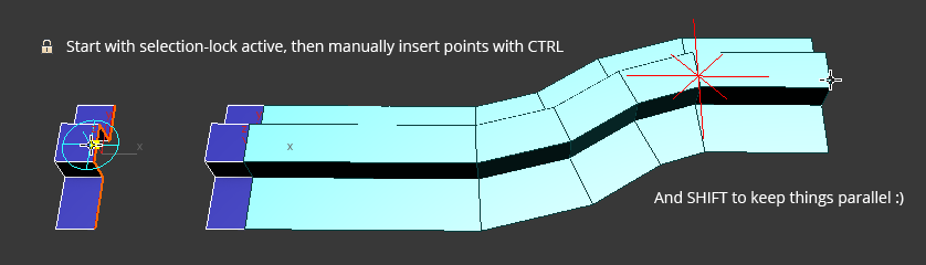 - Manual point insertion: When starting a new stroke and selection-lock was active, you have to insert points manually with CTRL, and during refine not all options will be available. Due to implementation restrictions, just pressing CTRL will not show a change, you also have to move the mouse a little.