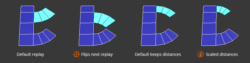 Activated replay causes the last or loaded path being reapplied to the new stroke (paths can be stored and loaded).