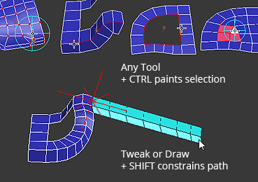 When CTRL is pressed, you can paint selections.