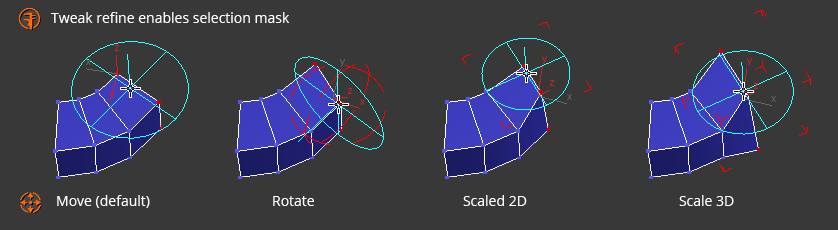 When active, click or click-drag to trigger the different tools depending on the active sub-object mode.