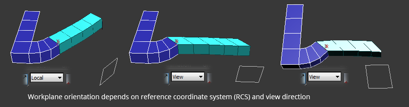 The draw and tweak tool make use of the workplane, which is shown in left lower corner of your screen. The orientation is provided by the active reference coordinate system (RCS),